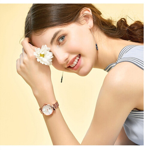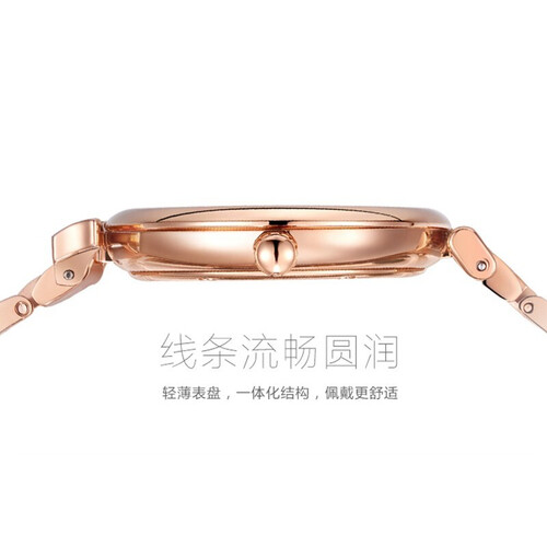 表带舒适自然,佩戴时贴合手腕,清爽透气不闷汗。时尚的亮色设计,闪闪发亮的玫瑰金色温柔又显白,爱美小姐姐的不错选择。
