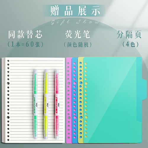纸张大小为B5格式,面积大,可以记下更多内容,内里四页彩色隔页纸,更方便查找。
