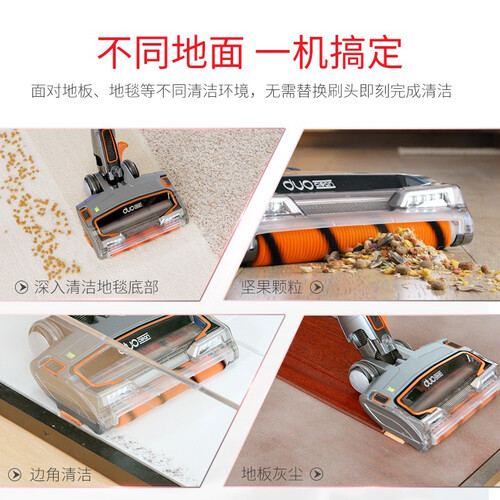 采用双刷头结构设计,清洁力出色,轻松搞定果皮、毛发等。0-180°自由调节,折叠方便不受限,扫拖无需弯腰。