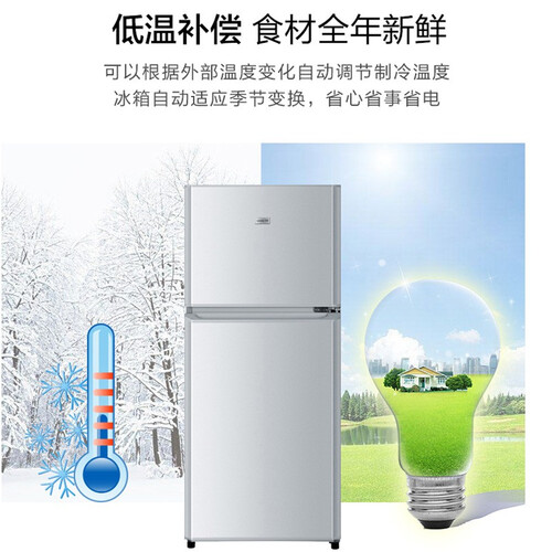 精致小巧的冰箱,带有冷藏和冷冻室,根据需求储存各种食材,轻松享用新鲜肉类和蔬果,储存省心更省事。