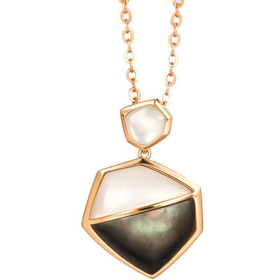 黑白相间的珍珠贝母设计,造型别致,凸显雅致唯美。不规则的几何图形,极具设计感,增添了一份纯洁与美好。