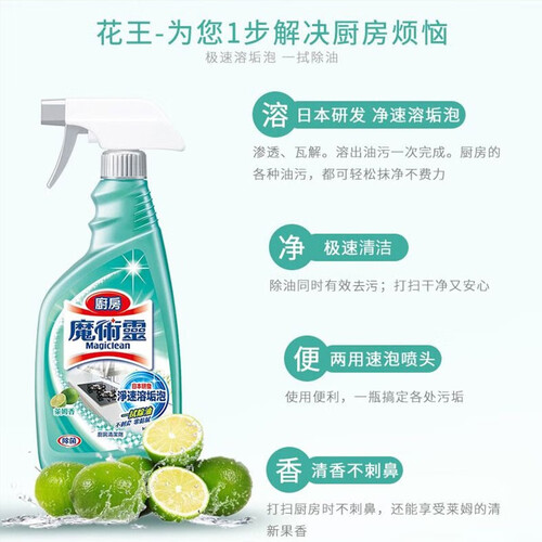 日本研发的净速溶垢泡,渗透瓦解溶出油污一次完成,除油的同时有效去污,厨房里的各种油污,都可以轻松抹净不费力。