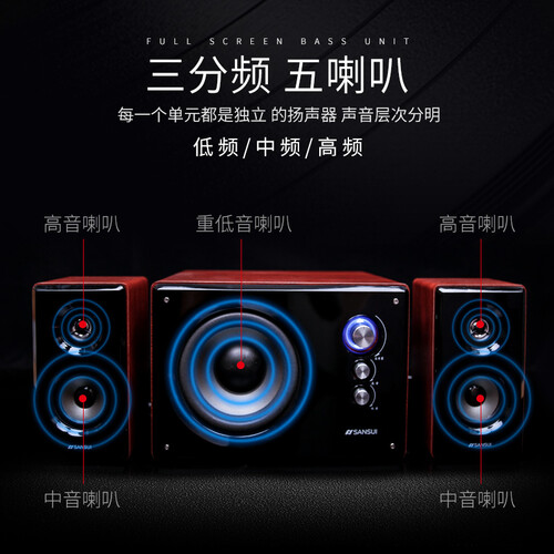 木质箱体设计,具有出众的导音效果,增强音质表现力。内置全频低音单元,发声震撼有力,身临其境。