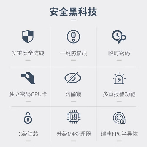 防猫眼结合内把手锁定,双重防护,安心外出,避免孩子、宠物误开。临时密码,便于阿姨上门打扫。
