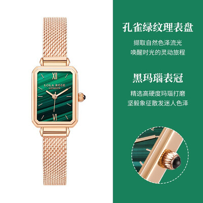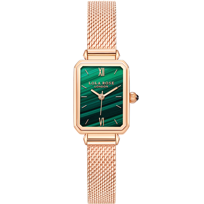 绿色表盘设计,保留孔雀石的流动纹理,色彩浓烈,但又干净治愈,与切角圆滑的方形结构相结合,为腕间增添一抹清新复古魅力。