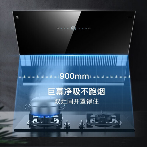 宽至900mm的巨幕拢烟区,双灶同开也无油烟,吸净油烟不扩散。平稳低噪的强劲风机系统,保持强劲稳定输出,持久大吸力。
