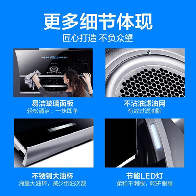 运用智能体感技术,挥手操控快捷省心,带来零接触操控体验。加大口径烟道,搭配不沾油大风轮,整机吸排效果更显著。
