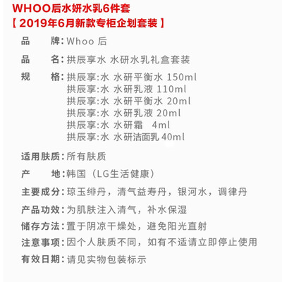 内含水乳以及面霜等基本护肤产品,有效补充水分,让肌肤嫩白透亮。质地清爽,不黏腻,适用于任何肌肤。