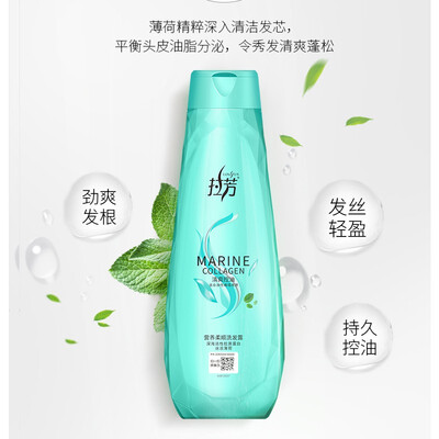 添加适量薄荷精粹,深入洁净发丝,清爽控油,令秀发丝丝清爽。添加深海胶原蛋白,提供秀发生长所需营养,密集滋养秀发。