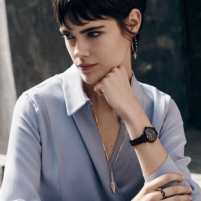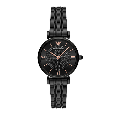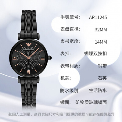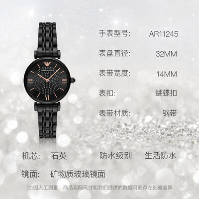 来自阿玛尼的黑色主调手表,自带些许神秘气息,并密镶多颗锆石,璀璨吸睛,轻松搭配显腔调。加持质感钢带,柔韧耐用不易断。