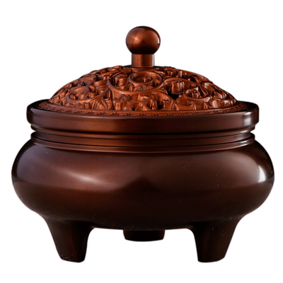 炉盖以精美的富贵花镂空雕刻,采用传统的精湛工艺,使用时间更长。三足鼎立造型,稳重大气,精美圆润,彰显古朴美。