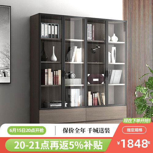 木月 带玻璃门简约书柜