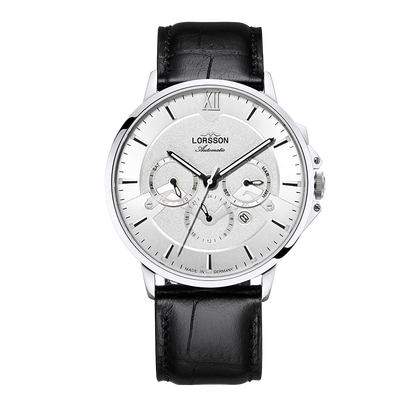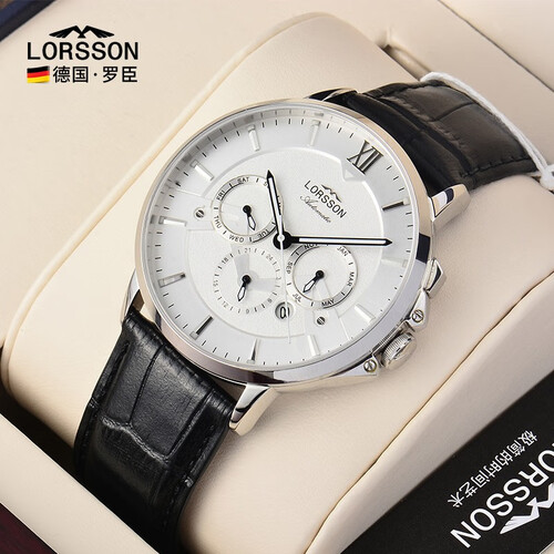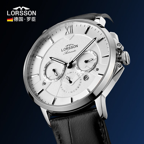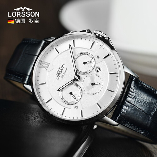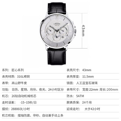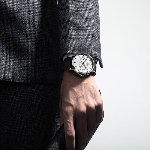 表盘上搭载星期月份的三眼设计,可随时知晓时间进度,实用又方便。配备26钻自动机制机芯,无数零件的联合运作,一目了然。