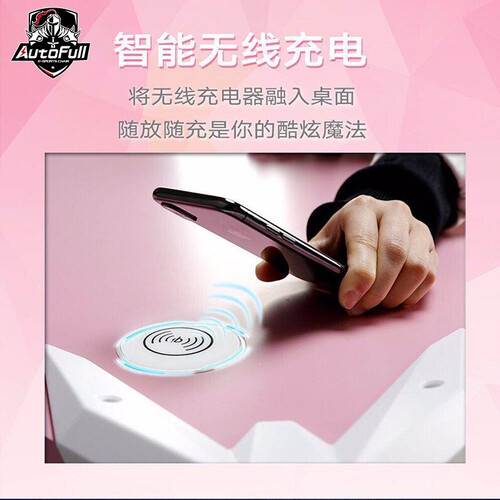 K型桌脚设计,碳钢材质打造,稳固耐用,支撑能力强,久用不易晃动,带有智能无线充电器搭配七彩氛围灯,更显酷炫。