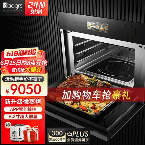 采用了极简的外观设计,可嵌入安装厨房,释放台面操作空间。配备智能显示屏幕,6.8英寸大气不凡,轻松匹配47种食物菜谱。