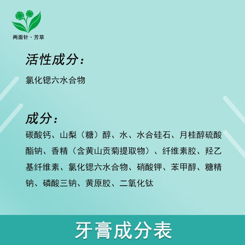 蕴含黄山贡菊和氯化锶六水合物,可清新口气,同时舒缓牙龈敏感。另外,牙膏是薄荷菊香型,可抑制口腔异味。