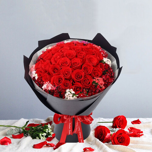 细选丝带进行包扎,让花束结构牢固,鲜花不容易散开掉落;优选云南花材制作,有效保持新鲜,让你赠送更加放心。