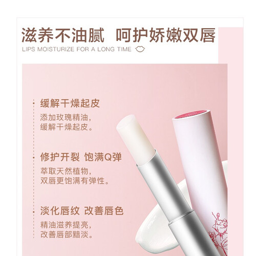 淡淡的玫瑰味道,涂上嘴很舒服,里面添加了玫瑰精油、白池花籽油、橄榄油等成分,可以有效缓解干燥起皮。