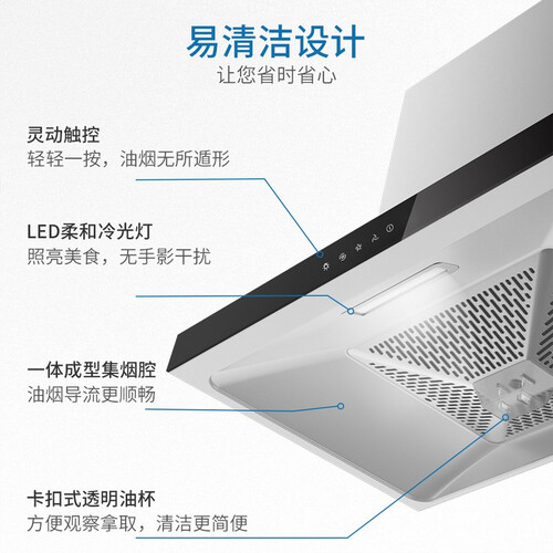集油网采用不粘油喷涂工艺,导油过滤更顺畅,让烟机长久保持稳定运行。采用LED柔和冷光灯,让视线更清晰,方便夜间烹饪美食。