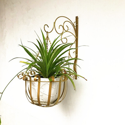 18K金色壁挂式花篮架,光是外观就充满了轻奢的欧式风格调。搭配小盆绿植,能为阳台增添不少浪漫的气息。