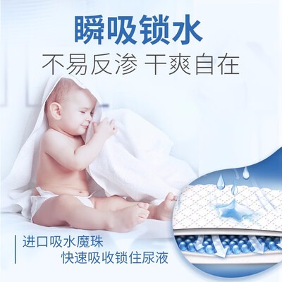 柔软压纹打孔面层,尿液快速下渗,舒爽透气。强效吸水魔珠,强力吸水锁水。立体设计,贴合宝宝肌肤。