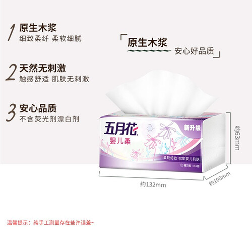 通过权威检测,严选原生木浆,纸质细腻柔软。采用细致柔纤配方,提升纸巾的吸水容污能力,擦拭更加干净卫生。
