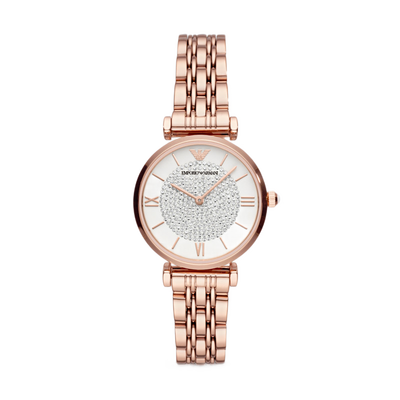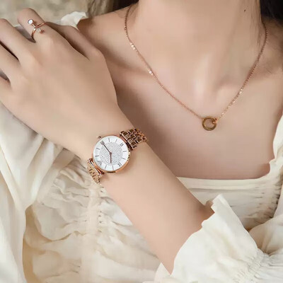 简约白色表盘的中央点缀璀璨夺目的小钻石,闪闪夺目,钢制外圈搭配时尚的玫瑰金色,简约大气,更能彰显女性的优雅气质。