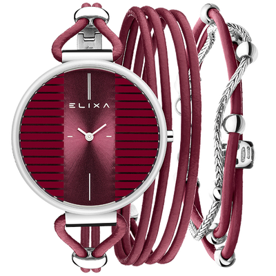 多层的穿戴法增加层次感,丰富了视觉效果,让表在手腕上呈现出时尚之美,艳丽的酒红色更加具有成熟的质感美,凸显高级感。