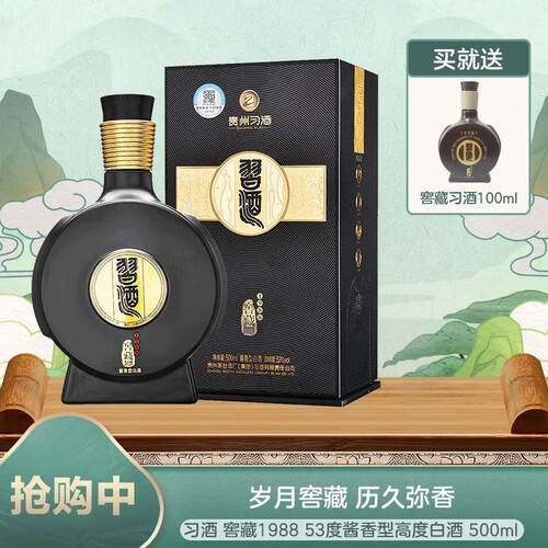 这是一款窖藏1988白酒,雅黑酒瓶搭配金色点缀,看起来轻奢又复古,加上浮雕装饰让人忍不住拿在手里把玩。