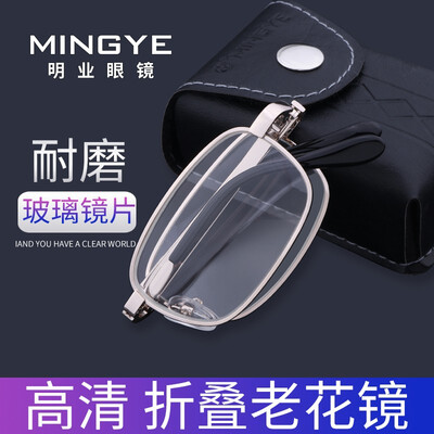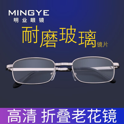 明业折叠便携高清玻璃老花眼镜