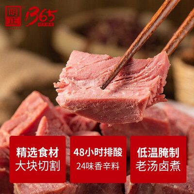 精选鲜牛的前胸肉部位,牛肉中带有嚼劲的筋,口感更酥软。遵守祖传手艺汤和火候,采用八个小时炖煮,豪迈的卤香深入肌理。