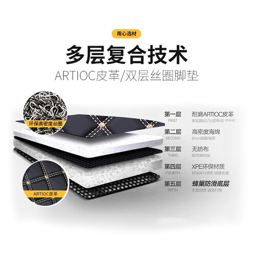 精选环保无味材质,覆盖加厚弹性丝圈,无毒无害放心舒适。拥有侧面加高设计,配备贴心储物袋,全面防护实用便捷。