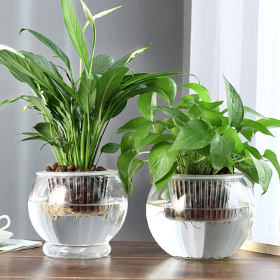 透明小巧的瓶身,适合花鱼共养,上边是生机盎然的绿色植物,下边是生动活泼的小鱼自在游荡,给平淡的生活增添一点乐趣。
