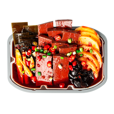 丰富食材,产地直供。甄选优质毛血旺,入口无膻味。选用牛油火锅底料,辣度适中,搭配多种素材,香味浓郁。