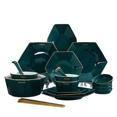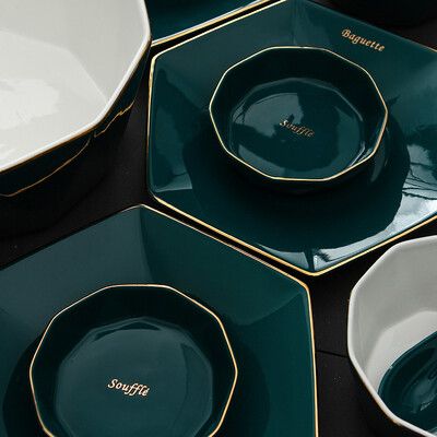 餐具上带有手绘描金线条,提升餐具的颜值和品位,美观大气。釉面细腻光滑,没有毛糙现象,不易沾污,清洗不费力。