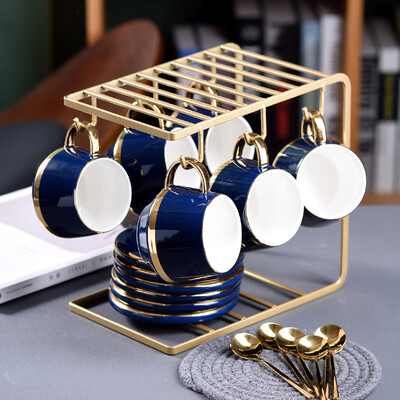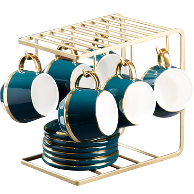 套装内带有U型架子,上置挂钩,能够用来悬挂咖啡杯,然后将碟子放置在架子的下侧,看起来更加整洁有序。