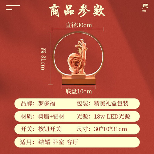 浪漫台灯设计,精选树脂材料打造而成,配置了铝材灯架,具有出色的散热效果,保证使用的安全性。