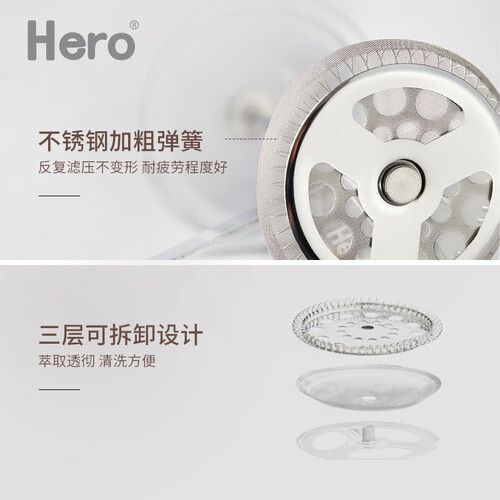 无需加热,还原本味。弹簧加压,不易变形,配置两层压板,精细过滤。升级版压杆,萃取时轻松省力。