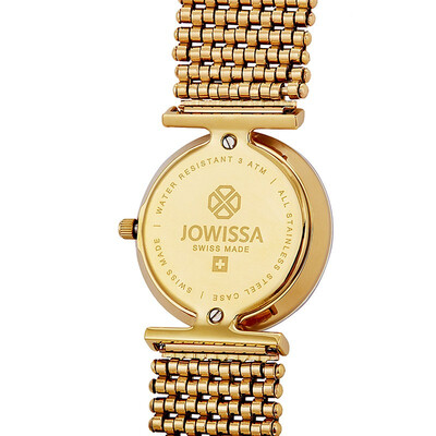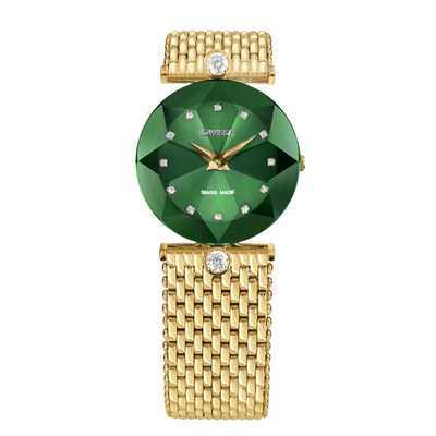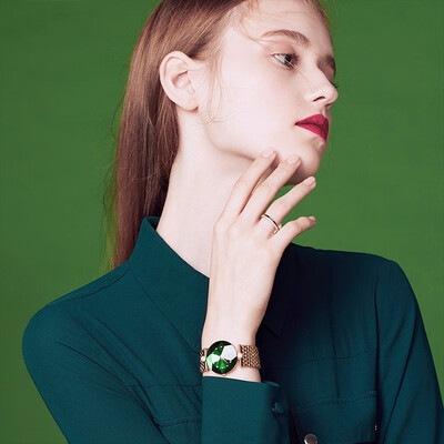 表盘采用了钻石切割工艺,并以绿色来增添亮眼光芒,搭配金色表带,尽显华丽轻奢魅力。瑞士石英机芯,性能稳定可靠不易误时。