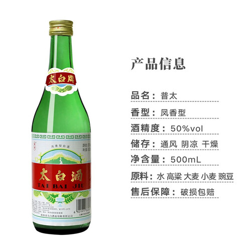 太白酒 普太绿瓶凤香型 白酒