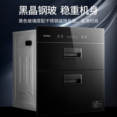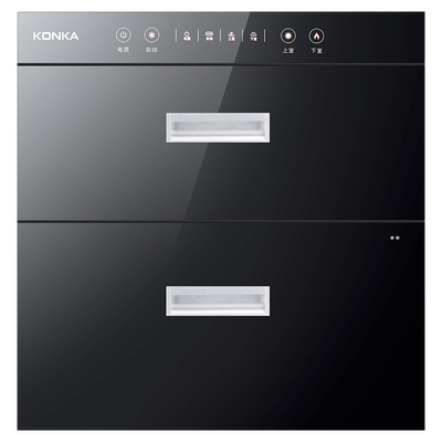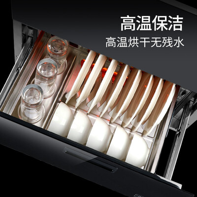 上室采用双重消毒杀菌方式,餐具更干净,呵护家人健康。搭配黑晶钢化玻璃面板,沉稳时尚,同时方便清洁。