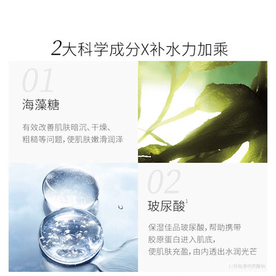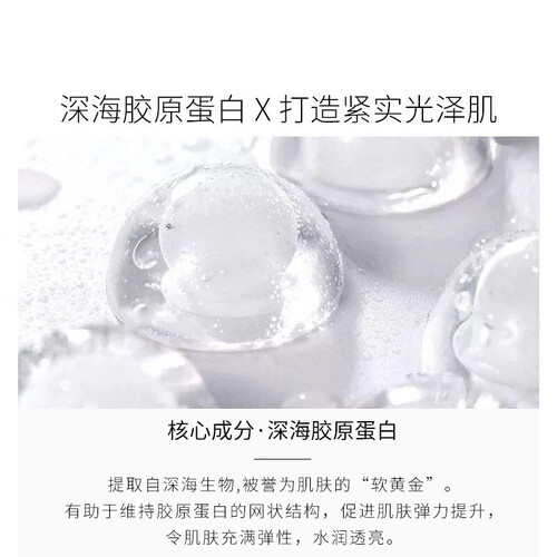 透明质酸分子,可以在表面形成屏障,达到深层补水效果。含有深海胶原蛋白,为肌肤补充营养,更加细嫩光滑。