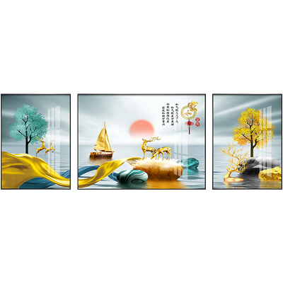 装饰画边框采用铝合金材质塑造而成,结实耐用不易变形,质感光滑触感佳。三联式设计,画面十分生动,挂在墙上更美观。
