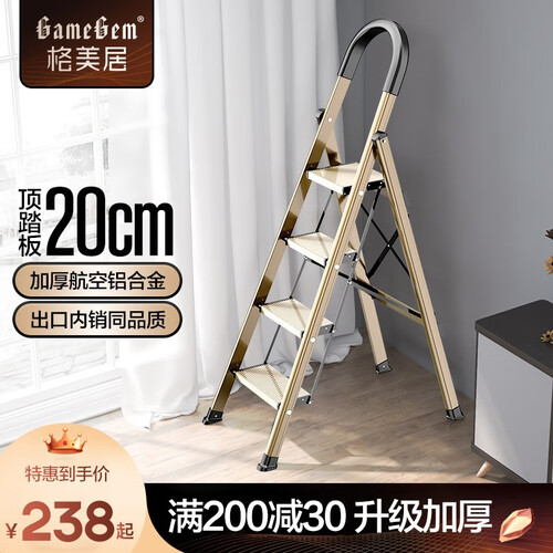 采用厚铝料的材质,使得家用梯坚固耐用,轻便十足。力学原理的设计,居家登高更稳固,带来独特的体验。