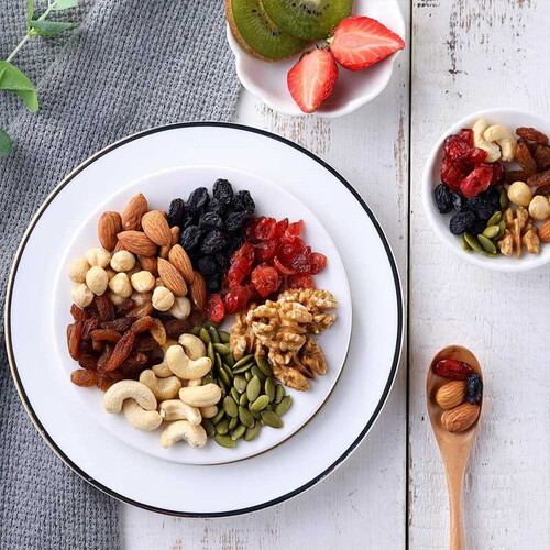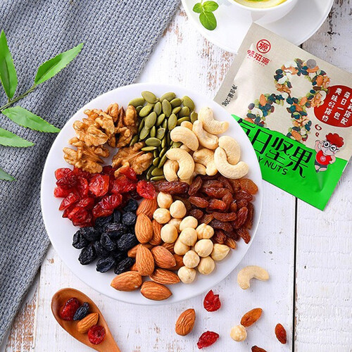 采摘珍稀品质果粒,把干果精心配比,八种口味相互融合,口感甜脆清新。慢培轻烤的加工工艺,保留果肉的原汁原味。