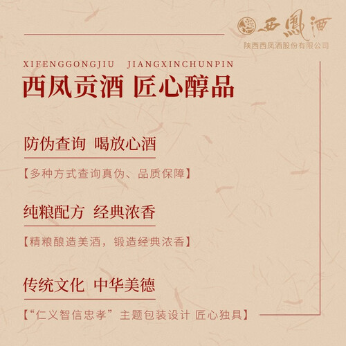 甄选粮食和水源,酿制的酒液香气浓郁,清澈明亮,喝起来更满足。酒体圆润醇厚,入口柔和细腻,甘冽绵甜,口口满足。