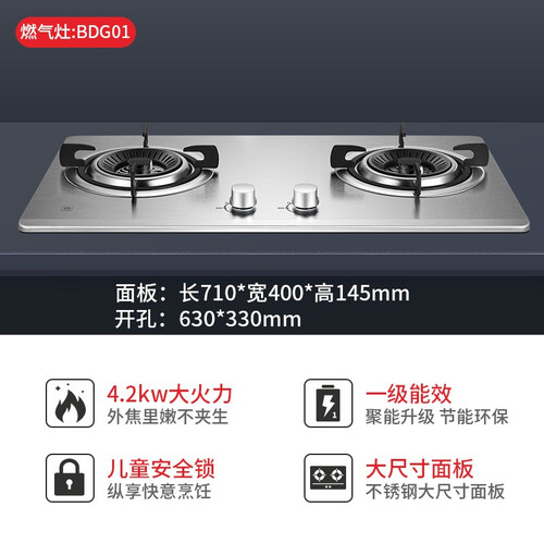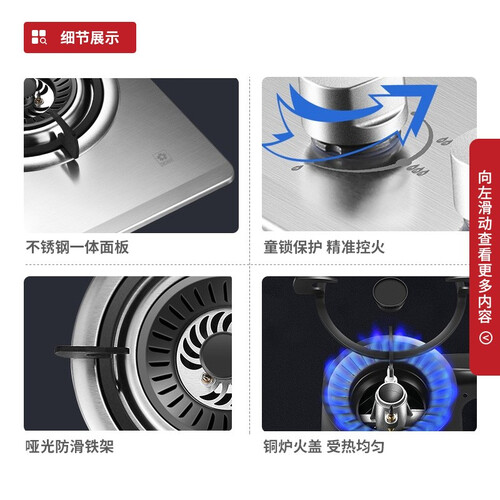 采用条纹旋火技术,与锅接触面更大,满足日常爆炒需求。炉头采用三防结构,防水防风,使火焰持久保持稳定。