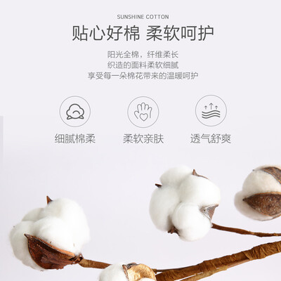 长时间阳光照耀的全棉,纤维柔长,制造的面料柔软细腻。良好的透气性,带来干爽的睡眠,畅享无忧睡眠。