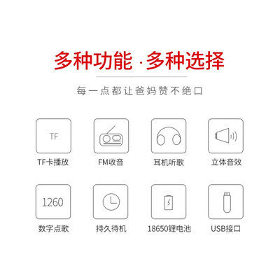 18650大容量锂电池,拥有充足电量,出行时随心收听,不用担心电量不足。立体音效的收听模式,为老人提供清晰的播放模式。