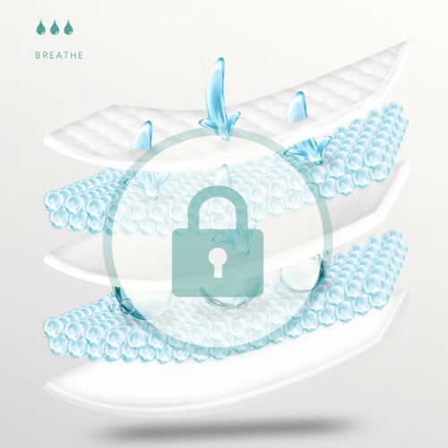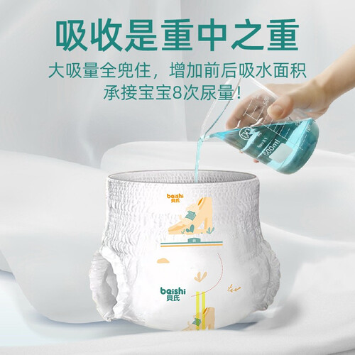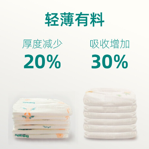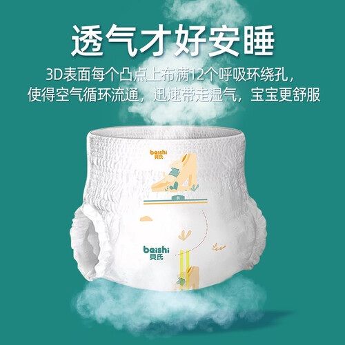 采用在线芯体技术,纸尿裤穿起来柔软又舒适。复合无纺布材质,紧密贴合宝宝皮肤。密布微孔底膜,透气效果良好。
